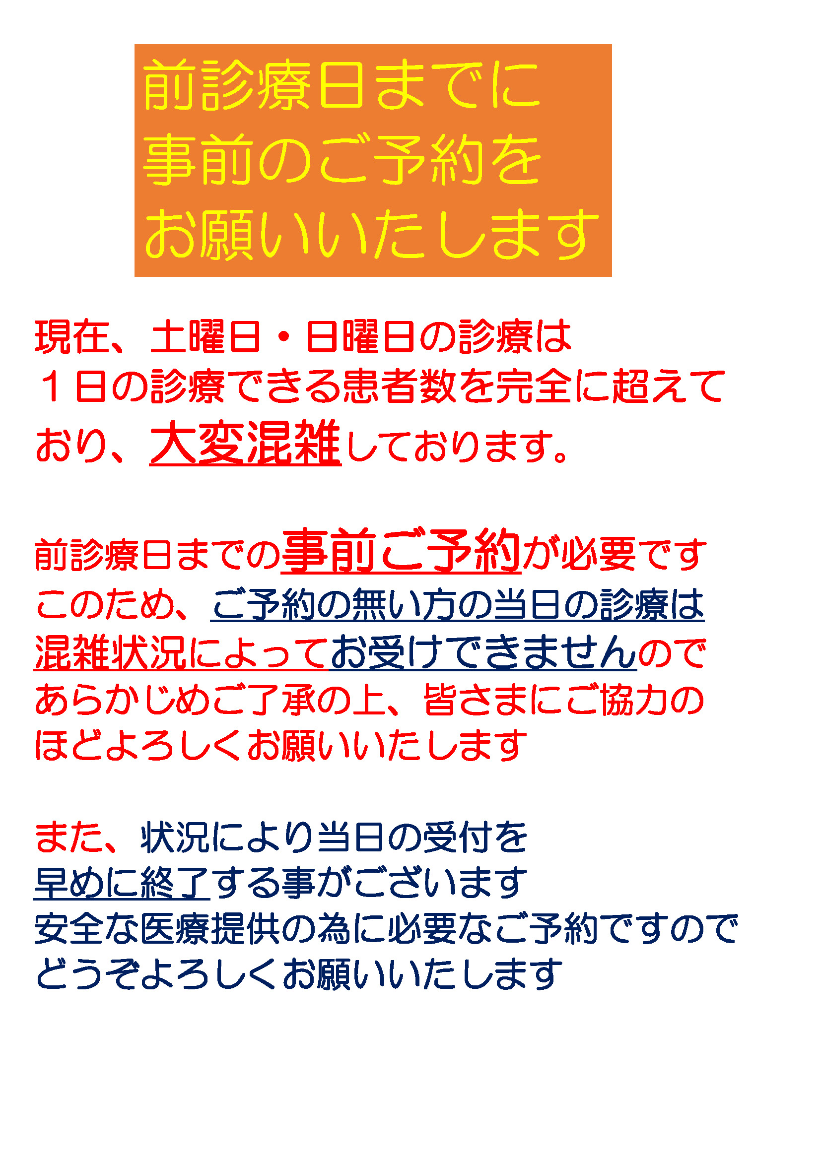 ひまわり眼科HOMEお知らせ診療混雑に伴う事前予約制のお願い